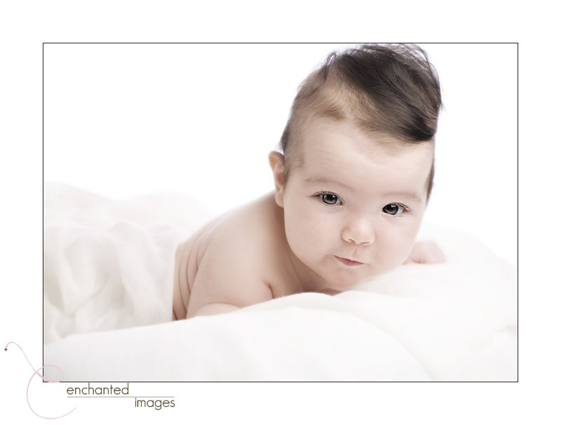 This little cherub is Miss A. She is another great example of the amazing hair we’ve seen on babies lately! Must be something in the water…..:-). We met Brigitte thanks to our friends at the Silver Spoon children’s boutique, but then when she and Chris were here with Miss A, we all discovered that they’re good friends with some other clients of ours, too. Such a small world around here! A was so much fun, because she was still small enough to snuggle like a newborn but old enough to give us some sweet smiles. She impressed us all with how well she held up her head up. Stay tuned for more, as Miss A is another one of our Bebe Collection members who will be back for her 6 month session before we know it!