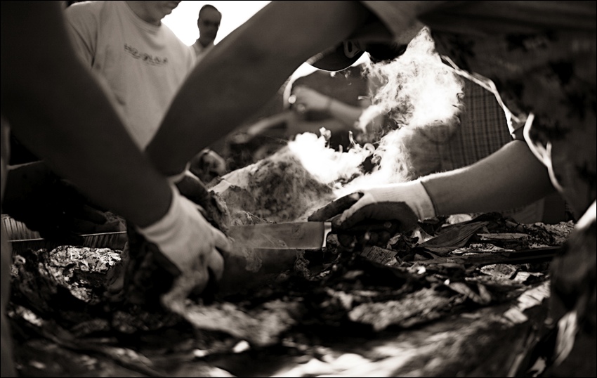 Well, we didn’t make it by that night, but we did show up the next day and what a great party it was. Wilbur came off the coals about 2pm and the feast was on. I think Reilly ate more than any of us!