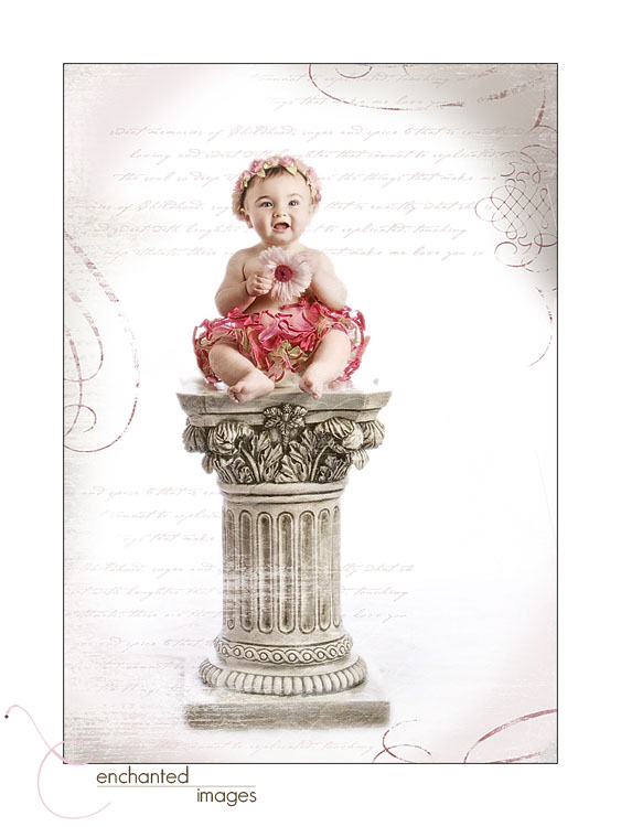Miss R, another one of our Bebe members, might just be a ballerina in training. She’s a petite little thing and moves faster than us old people! She’s so curious and bright, and always on the move. We were all shocked when we were able to perch her on our column without her trying to dive off. It’s funny how even the wiggliest kids will sit still on it; I think they realize it’s a perch and sense that diving off wouldn’t be a good idea (of course mom and I were on each side ready to catch her if she changed her mind!). We’re sure to be running out of breath when she’s back for her one-year portraits, and loving every minute of it!