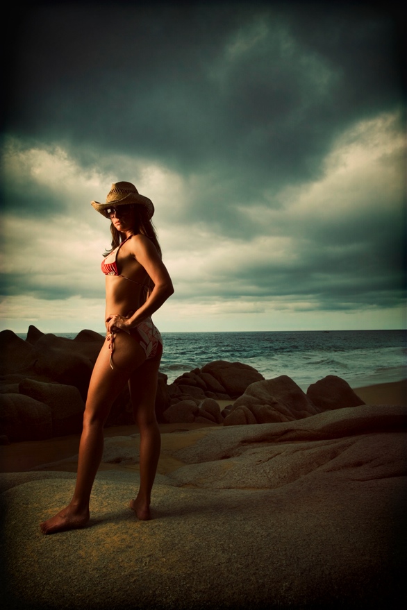 Just got back into town (San Diego) from our cruise to Cabo. Stef and I got to enjoy 5 nights out on the rolling (and rolling) ocean and a couple of relaxing days on the beach. It was a great time and we made some new friends. One of the days I decided to lug out the camera gear and lights to see what trouble I could get into. One of the dancers on the boat cabaret show was gracious enough to model and I got a few great shots before the rain and surf knocked us out. Here are a few of them. Thanks Rachael!