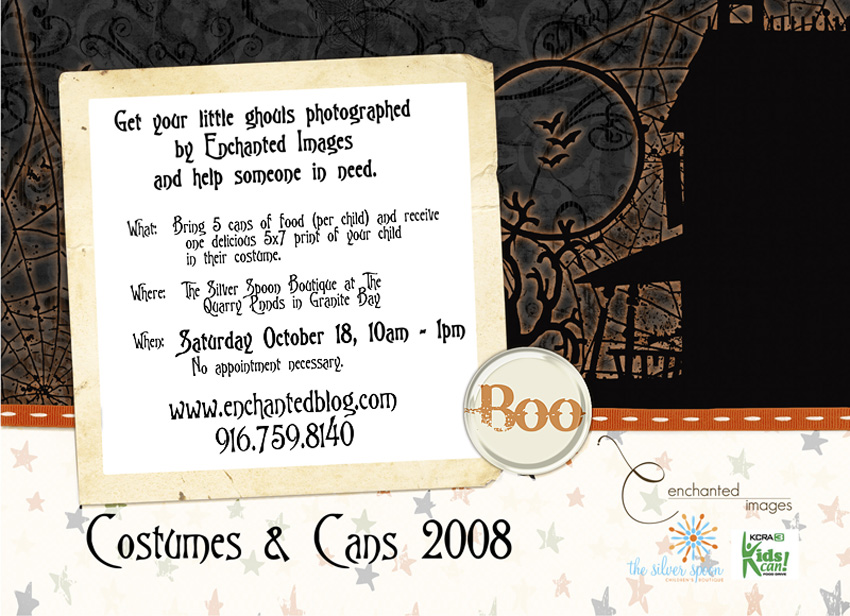 We want to collect tons of food this year to contribute to the KCRA Kids Can! food drive and need your help! This event will be a great way to help those in need and get a super cute photograph of your little ghouls and goblins. Bring your kids, neighbors and family and let’s make a difference! Hope to see you there!