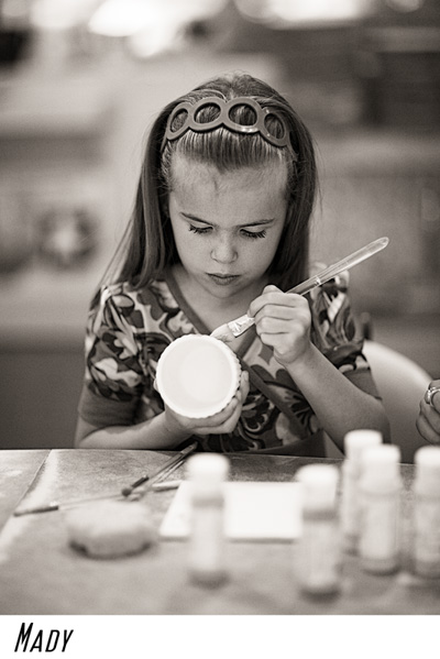 Well our baby little girl turmed six today and had a wonderful time with a few friends for the party. She started the day at Petroglyph, a pottery painting boutique and made a beautiful mess. The girls all chose their ceramics then got to go wild with their choice of paint.