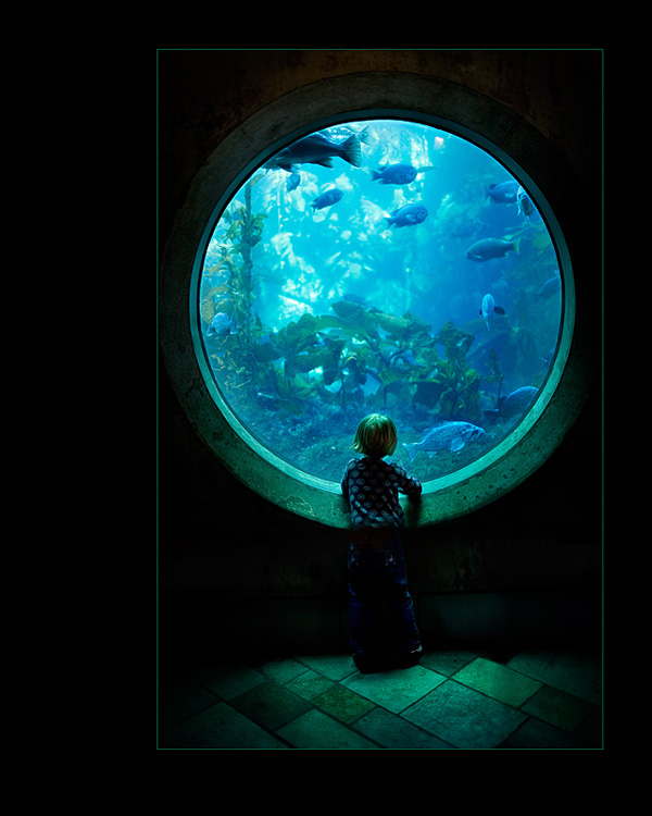 I knew before we went to the aquarium I wanted to get a photograph of Teagan or Reilly looking into an aquarium window. Having never been there, I didn’t quite know what to expect. Teagan and I walked into a room and there were a number of these ‘portals’ for viewing. One problem…they were all full of other people.